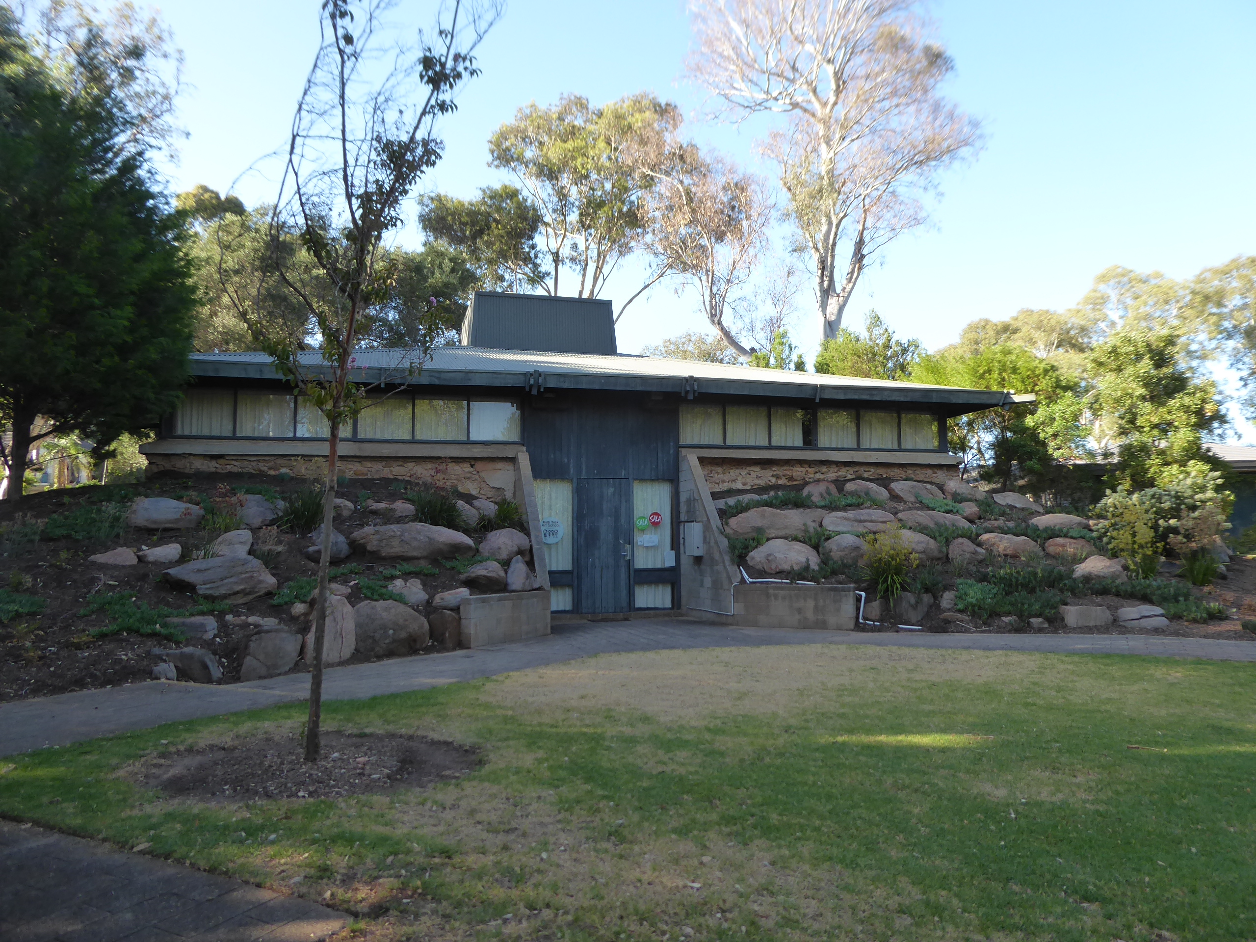 The lawnmowing man stopped his mower and waited for us to go past very kindly. The huge old fig tree is near the Ruth Tuck Art School. This school, on Hubbe Court was established in 1955 and specialises in water colour painting and printmaking.