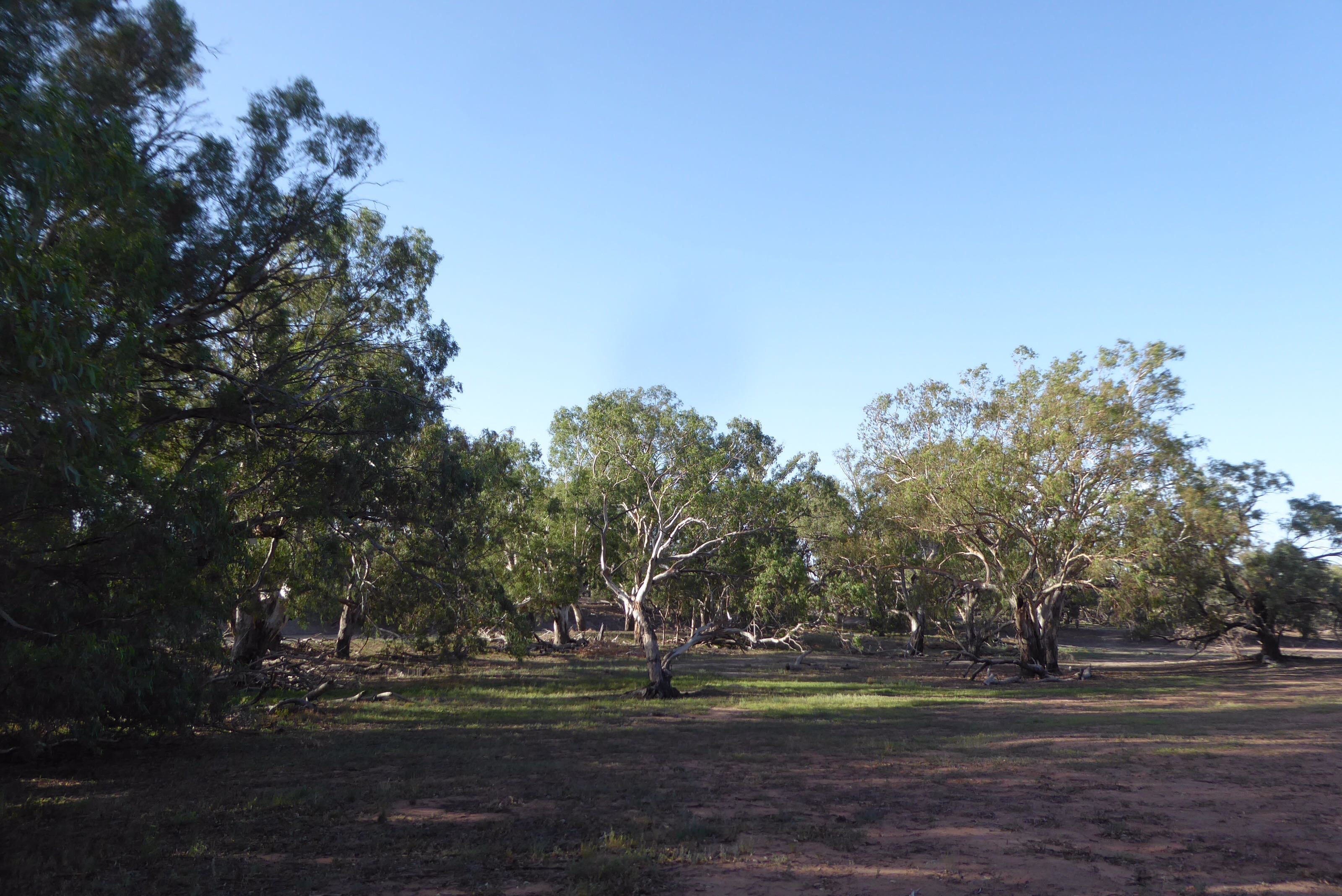 We paused for a late lunch at this campground in the Paroo- Darling National park on the banks of the Darling River ( now a series of puddles). Looking to the deep area on the bend it was low but still about 20m wide as far as we could see (not far) but back upstream it was easy to see the dry bed between short patches of moisture. This area was part of Wilga station until it became park in 2002.