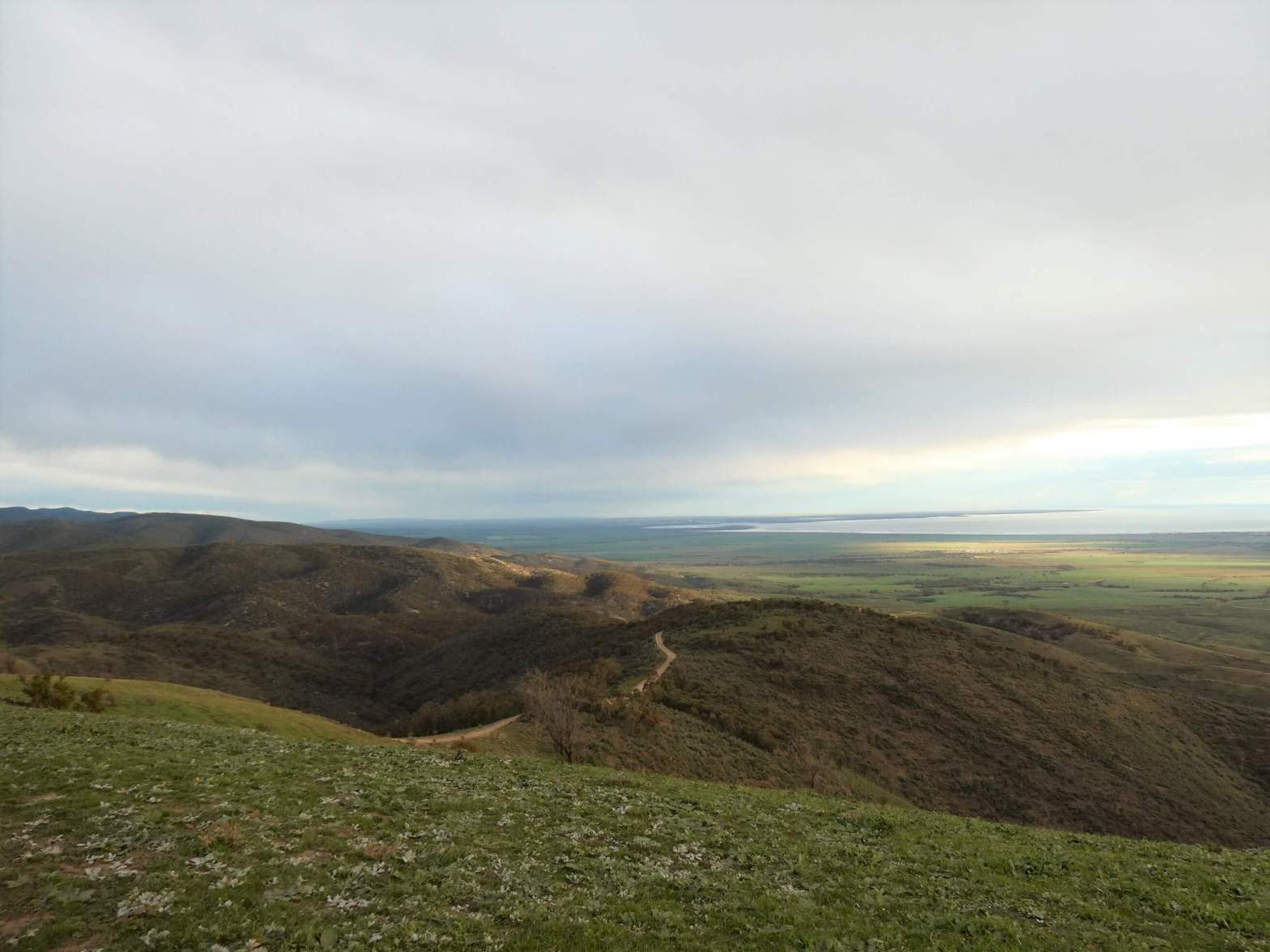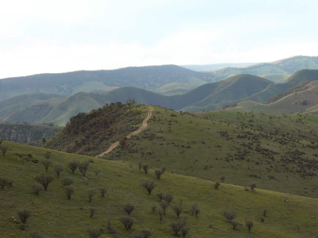 The track winds its way over the hills and gradually makes its way down onto the flat ground away to the west. On the way there are some challenging areas of driving (mostly caused by rutted track or rocky sections) which demand good vehicle placement. There are also a couple of areas of steep descent which allow for practice with using low gear, or the use of fancy “crawl” buttons on more modern four wheel drives. There are a couple of areas where the track comes close to the side of the hills, so not for the extremely faint hearted.