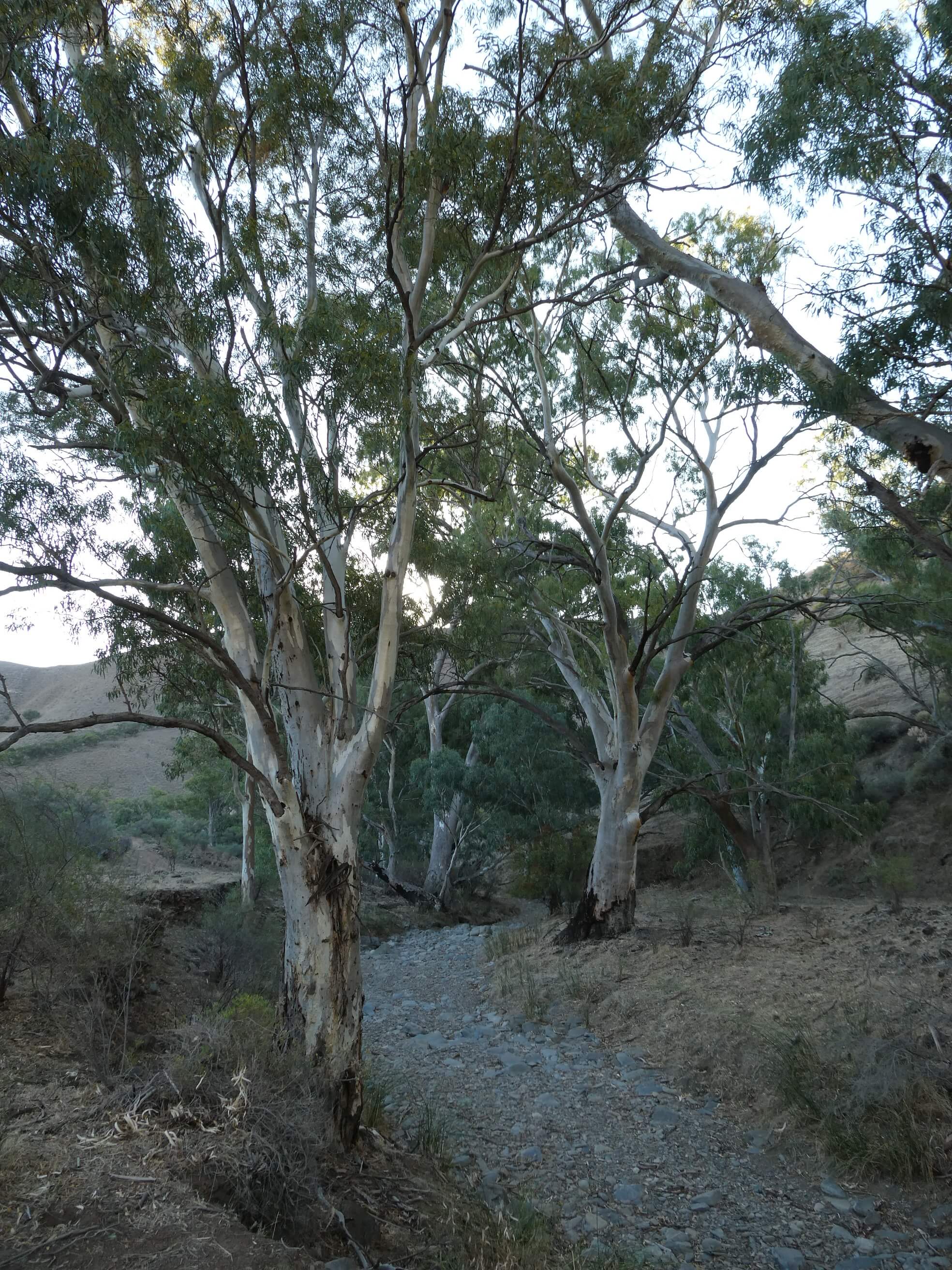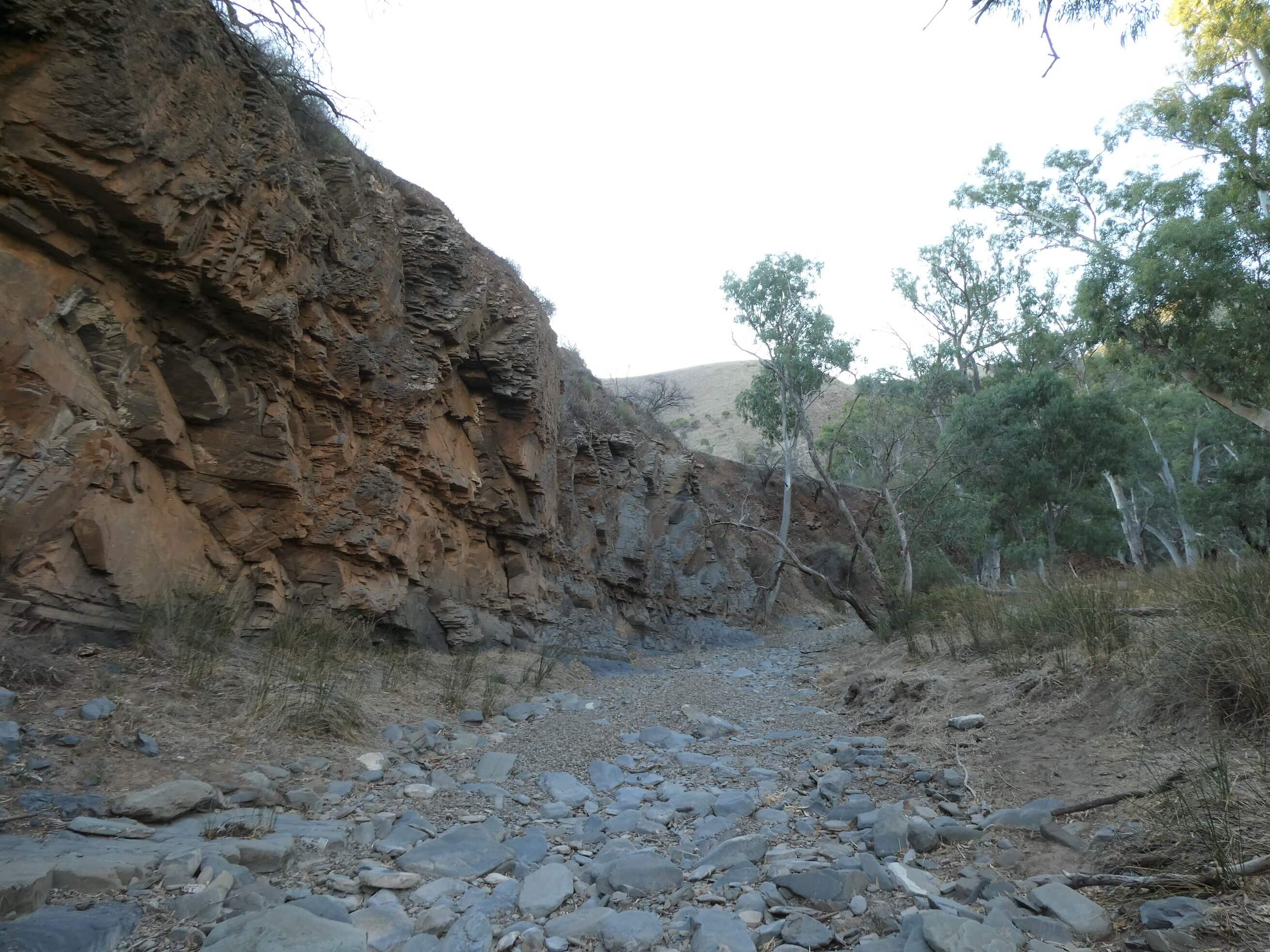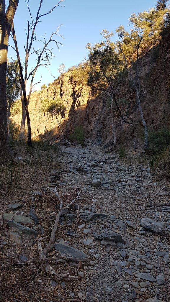 In the late afternoon we decided to walk up “our” creek and followed the various tracks along for a couple of km, enjoying the large gums, greedily clutching rocks in their roots, the dramatic cliffs and interesting rocks.