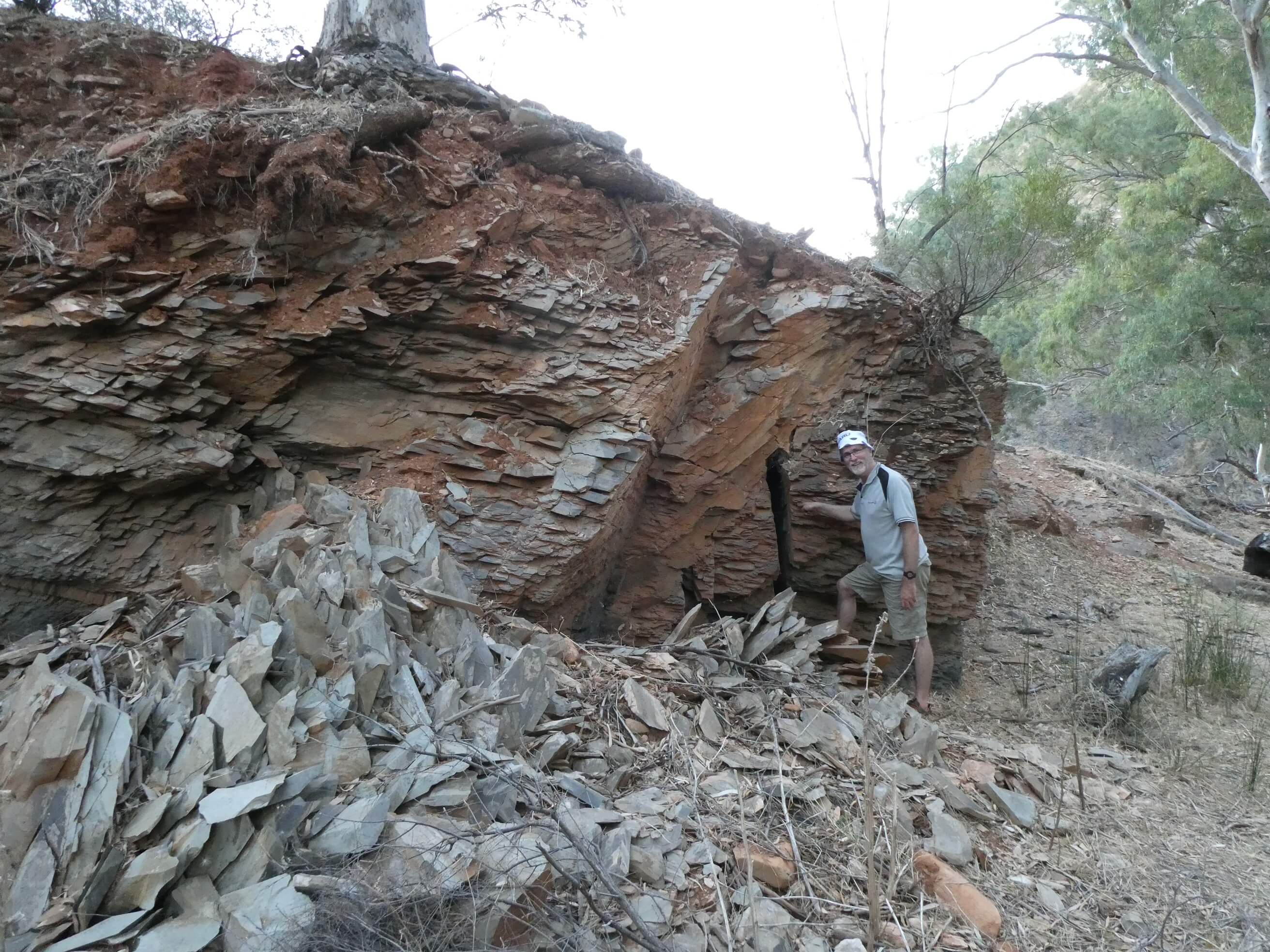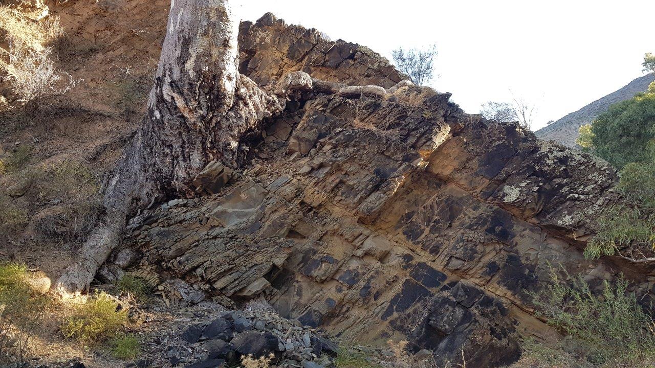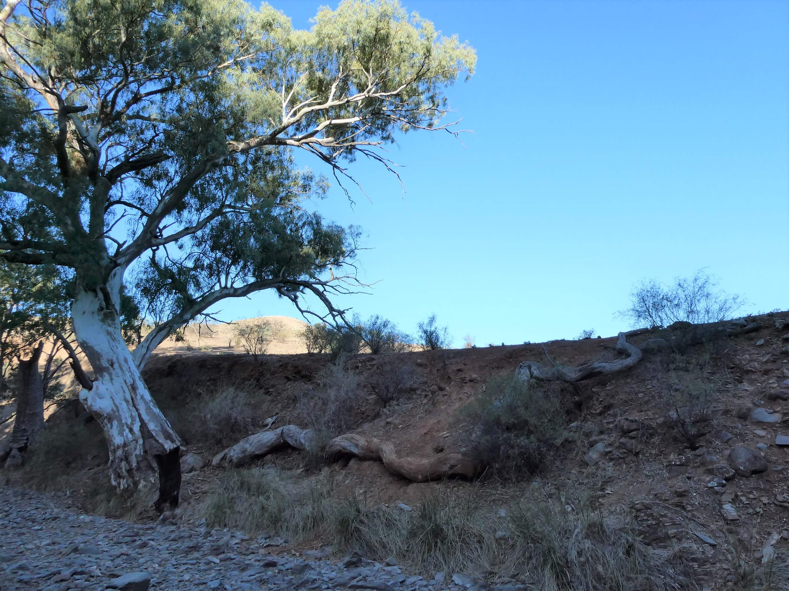 In the late afternoon we decided to walk up “our” creek and followed the various tracks along for a couple of km, enjoying the large gums, greedily clutching rocks in their roots, the dramatic cliffs and interesting rocks.